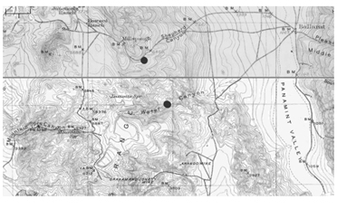 At Anthony Mill Ruins there are remains of an arrastre probably used during this century, but the square nails at the building sites attest to a much older occupation. The roof on one of the dwellings was built by Arnote. A pipeline, whose trace is clearly visible, connected the mill with Water Canyon. Some residents can remember when it was still there. 34