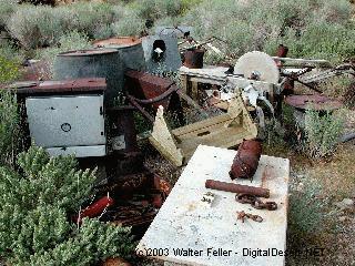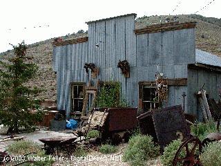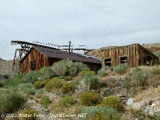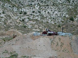 Freighting at Cerro GordoRemi Nadeau received the contract to haul Cerro Gordo's bullion, and had begun work by December 1868. In 1870, with 32 teams, Nadeau agreed to haul 130 tons a month, which was only half of the capacity of the furnaces. Wagons would start out on the 200-mile, 3 week trip by chaining their wheels in place for the ride down Yellow Grade.Practically every day, $50,000 worth of Cerro Gordo silver and lead were hauled by Nadeau's company into the streets of Los Angeles. Three hundred and forty tons of bullion were hauled from December 1868 to the end of 1869. The amount doubled to 700 tons in 1870. Nadeau's contract with Belshaw expired December I, 1871 and was taken up by James Brady, who in 1869 came into Inyo County as superintendent of the Owen's Lake Silver-Lead Company. Brady founded the town of Swansea, some three miles north of Keeler, and built a furnace there to work Cerro Gordo's ores. In an effort to save expenses, Brady built a small steamer 85 feet long, It was launched June 27, 1872, and by churning across Owen's Lake, it cut a few days off the 3 week trip to Los Angeles. Christened the Bessie Brady after his daughter on July 4, 1872, it carried 70 tons of bullion a day across Owens Lake. This only transferred the pile of bullion from Swansea to Cartago, where wagons still couldn't haul it away fast enough. That fall, rains hampered freight teams, causing 12,000 bars of bullion to accumulate at Cartago, and 6,000 each at Swansea and Cerro Gordo. The bars became building blocks as creative citizens constructed rooms out of them with canvas roofs. In March, 1873, a disease effecting horses was widespread in Inyo County. It subsided in April, but not without causing even greater freighting complications. By May the pile of bullion had grown to 30,000 bars, and Belshaw and Beaudry were desperate. Finding Nadeau finishing up a Nevada contract, they approached him in hopes that he would once again accept the contract. He agreed only if Belshaw and Beaudry joined him in forming the Cerro Gordo Freighting Company and were willing to spend $150,000 in establishing a line of stations a day's journey apart. With all three accepting the conditions, Nadeau was, on June 6, 1873, once again in Los Angeles with a load of Cerro Gordo's bullion. By late fall of 1873, the teams were catching up with the backlog. Belshaw did some furnace remodeling, shutting down his furnaces and thus allowing the freighters even more time to catch up. In 1874, with bigger furnaces, the two mills produced a total of 400 bars a day, twice the output of 1871. Mines needed lumber for fuel and mine timbers, and the wood supplies on Inyo Mountain were getting scarce by 1873. A Colonel Stevens proposed constructing a mill high in Cottonwood Canyon, west of Owens Lake, with a flume six miles long running down the canyon to the wagon road. His mill began operation in 1873, the flume being completed in the spring of 1874. The mill tapped a resource of many square miles of scrubby forest which, during the winter, was out of reach due to deep snows. In 1870 an attempt by Belshaw to pipe water into Cerro Gordo only resulted in a tot of frozen and broken pipelines. Three years later Stephen Boushey's Cerro Gordo Water and Mining Company began construction of a pipeline and a steam pumping plant which brought water to Cerro Gordo from Miller Spring, 10 1/2 miles northwest of town. From the summit, the water ran through 13 1/2 miles of 4 inch pipe, falling 950 feet into town. The pipeline was 4 1/2 miles longer than originally planned, as a certain section of the pipeline crossing a valley could not withstand the pressure. At that point, all the water leaked out of the joints. The engineer tried unsuccessfully to seal the joints with lead, then tore up the pipe and ran it around the mountain. This added $26,000 to the cost of the pipeline, making the cost of the whole venture in excess of $74,000. With the line completed in May, 1874, water that previously cost 7 to 10 cents per gallon sold for 1 1/2 to 4 cents. It delivered to town only two-thirds of the water that passed through the pumping plant. The Union-San Felipe conflictMr. John Simpson was hired by Belshaw and Beaudry in 1874 to construct a 4,000-foot tunnel under the town of Cerro Gordo to tap the Union vein and provide easier access. Whie in their employ, Simpson refused to pay the high toll price of the Belshaw-controlled road up Yellow Grade. With public opinion in his favor, Simpson was successful in getting the Inyo County Board of Supervisors to reduce the toll charges. This action greatly favored the Owens Lake Silver-Lead Company who used the road to transport ore to their smelters in Swansea.The two biggest mines in the district during the 1870s were the Union, owned by Belshaw and Beaudry, and thee San Felipe, or Omega (located adjacent to the Union) owned by the Owens Lake Silver-Lead Company. This company brought suit in 1873 against the Union Mine and Belshaw's company to force a point. The Owens Lake Silver-Lead Company was driving a tunnel to intersect its silver vein when they struck lead. Belshaw, upon seeing galena on the San Felipe dump, accused the Owens Lake Silver-Lead Company of robbing his mine (vein) and boldly took over the San Felipe tunnel. The Owens Lake Silver-Lead Company was suing for damages and to regain control. In a weeklong trial in July of 1873, it was claimed by the Owens Lake Silver-Lead Company that the Union Mine was claim-jumped by its original locators, it being a part of the San Felipe vein. The Union group contended that the San Felipe was a silver vein mine cutting diagonally across a lead vein. The jury thought the San Felipe discovers shafts intersected the two veins, and the Owens Lake Silver-Lead Company won. While the verdict was being appealed, the Union group was "vigorously at work robbing the mine of the rich ores, leaving all ores assaying less than twenty- five percent lead in the mine or