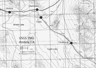 In the winter of 1975-76, the Santa Fe relaid the entire track of the Parker Branch in California and removed the siding at Chubbuck. At that time, someone had built a house and garage on one of the mammoth foundations. A small ore crusher operated by an automobile engine, probably used to sample gold ore, sat in front of the house.