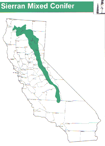 Ecosystems & Habitats Tree Dominated Wildlife Habitats Sierran Mixed Conifer (SMC) Douglas Fir, Ponderosa Pine, White Fir Vegetation Structure. The Sierran mixed conifer habitat is an assemblage of conifer and hardwood species that forms a multilayered forest. Historically, burning and logging have caused wide variability in stand structure, resulting in both even-aged and unevenaged stands (Rundel et al. 1977). Virgin old-growth stands where fire has been excluded are often two-storied, with the overstory comprised of mixed conifer and the understory white fir and incense-cedar (Tappeiner 1980). Forested stands form closed, multilayered canopies with nearly 100 percent overlapping cover (Rundel et al. 1977). When openings occur, shrubs are common in the understory (Kosco 1980). Closed canopy stand distribution is both extensive and patchy depending on scale, site, slope, soils,microclimate, and history. At maturity, the dominant conifers range from 30 to 60 m (100 to 200 ft) tall with a highly variable basal areas of about 17 to 26 sq m (180 - 280 sq ft). Diameter breast height at maturity for pines and Douglas-fir is commonly greater than 1 m (40 in); white fir greater than 0.9 m (35 in) is common (Laake and Fiske 1983b). Fuel loading in stands heavy with pine may reach 27,000 kg/ha (70 to 80 t/ac) in natural stands; whereas fuel loading in stands heavy with fir may reach 16,000 kg/ha (40 to 50 t/ac). Composition. Five conifers and one hardwood typify the mixed conifer forest white fir, Douglas-fir, ponderosa pine, sugar pine, incense-cedar, and California black oak. White fir tends to be the most ubiquitous species (though most often a minor overstory component) because it tolerates shade and has the ability to survive long periods of suppression in brush fields Douglas-fir dominates the species mix in the north, but is absent south of the Merced River (Tappeiner 1980). Ponderosa pine dominates at lower elevations and on south slopes. Jeffrey pine commonly replaces ponderosa pine at high elevations, on cold sites, or on ultramafic soils (Rundel et al. 1977). Red fir is a minor associate at the highest elevations. Sugar pine is found throughout the mixed conifer type. Black oak is a minor, but widespread, component in mixed conifer stands. Though black oak does best on open sites,it is maintained under adverse conditions such as shade, ridge tops, and south slopes where conifers may regenerate in its shade (Tappeiner 1980). In the central and particularly southern Sierra Nevada, giant sequoia is a striking associate of the mixed conifer type (Rundel et al. 1977). White fir, incense-cedar and sugar pine are associated with the mesic giant sequoia sites (Tappeiner 1980). Deerbrush, manzanita, chinquapin, tan oak, bitter cherry, squawcarpet, mountain whitethorn, gooseberry, rose, and mountain misery are common shrub species in the mixed conifer understory (Kosco and Bartolome 1983). Grasses and forbs associated with this type include mountain brome, Carex, bull thistle, iris, Juncus, and needlegrass. In all, over 100 species of grasses, forbs and shrubs contribute to the flora of the mixed conifer habitat (Tappeiner 1980). Other Classifications.- Other names for the Sierran mixed conifer habitat include yellow pine forest (Munz 1973). Parker and Matyas (1981) divide Sierran mixed conifer into five series: mixed conifer-fir, mixed conifer-pine, ponderosa pine, white fir and Jeffrey pine. Rundel et al. (1977) describes the mixed conifer as part of a White fir-mixed conifer forest and Cheatham and Haller (1975) call this habitat Sierran coniferous forest (8.42), a major subdivision of the lower montane coniferous forest habitat (8.4). Sierran mixed conifer is SAF type 243 (Tappeiner 1980). Where ponderosa pine or Douglas-fir predominates without significant amounts of white fir or incense-cedar, the forest is typed as Pacific ponderosa pine or Pacific ponderosa pine-Douglas-fir (SAF types 245 and 244, respectively) (McDonald 1980). Habitat Stages Vegetation Changes 1;2-5:S-D;6. After logging or burning, succession proceeds from an ephemeral herb to perennial grass-herb, through a shrub-perennial grass stage, to conifers (Burcham 1964). In many areas, however, shrubs appear in the first year after disturbance (Kosco 1980). The habitat stages are stage 1, grass-forb, with bedstraw, plantain, mountain brome, and needlegrass as common early succession species; stage 2, shrub-seedling-sapling, characterized by manzanita, Ceanothus, cherry, gooseberry, and mountain misery. In the seedling tree stage through the sapling tree, pole tree, small tree, and medium/large tree stages, the five conifers gain dominance of the site. Duration of Stages. Stage duration has been described by Verner (1980). The grassforb stage, generally is short-lived (less than 2 years). The shrub-seedling-sapling stage is usually evident by yr 2 and lasts 10 to 40 yr; this stage is a mixture of shrubs and saplings up to 6 m (20 ft) tall depending on the site, degree, and type of disturbance. If tall shrubs capture the site, it may take 10 to 15 plus yr for trees to dominate the site. The polemedium tree stage supports trees up to 15 m (50 ft) tall and may last from 15 to 90 yr on poor sites. The mature and overmature stages include stands greater than about 30 m (100 ft) in height. Biological Setting Habitat. The type adjoins Ponderosa Pine (PPN) at lower elevations and drier slopes, and White Fir (WFR) and Red Fir (RFR) at higher elevations. Wet Meadow (WTM) and Montane Riparian (MRI) are found within the Sierran Mixed Conifer type. Blue Oak - Foothill Pine (BOP) and Mixed Chaparral (MCH) may adjoin this type at drier, and lower, elevations. Wildlife Considerations. The mixed conifer forest supports some 355 species of animals (Verner and Boss 1980). Sensitive species inhabiting mixed conifer include spotted owl, fisher and pine marten. Endangered species include bald eagle and peregrine falcon (Verner and Boss 1980). Variet