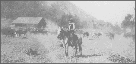 Riding Out the Civil War Lane Gets New NieghborsIn the spring of 1863 a new family of desert settlers took up temporary residence at Lane's. At that time, according to a sworn statement by Deputy Assessor Sydney Waite, a Mr. E. P. Prothero was living on the Mojave River in improvements on public land claimed by Aaron Lane. Edward Powell Prothero was a Welshman who, after converting to Mormonism, emigrated first to Utah and then to San Bernardino. The added security provided by Prothero and his family was a blessing, especially since he had two of his adult sons, John and James, still living with him.The stay was a brief one, however, as the Protheros soon finished construction of their own homes at the Cottonwoods. The following year Edward and his son, John, are shown in the Auditor's Assessment Book as each having improvements on state land at the Cottonwoods. In 1864 a cattle concern moved in near Aaron. They had a large herd with attendant cowboys -- always good neighbors to have if there is trouble with the Indians. The herd had been moved to the Mojave as the result of a long drought which had devastated the prominent ranchers in Southern California. The drought had started back in the late 1850s, and by 1862 the ranchers had begun losing their cattle to starvation. This is one of nature's ironies: in the midst of one of the worst droughts in Southern California history, there occurred the greatest storm. One of the stockmen, William Wolfskill, whose familiarity with the Spanish Trail extended back to 1830, had traveled the Mojave River valley in the summer of 1863 on his way to Tonopah to look after some mining interests. He noticed the verdant grasses were growing well despite the lack of rain, and determined to bring his cattle here if the drought continued. The dry weather persisted and by January of 1864 many of the ranch animals looked like skeletons, and large numbers were dying. Some ranchers had already lost half their stock, and it was feared that many more would be lost. The decision was made to move the cattle to the desert, thus a camp was established near Lane's. ![]() Early 20th Century photograph HERDING CATTLE IN THE UPPER MOJAVE RIVER AREA J. E. Pleasants, one of the cowhands employed by William Wolfskill, later wrote a story of the drive, which appeared in the March 1930 issue of Touring Topics. He writes that beginning in January 1864 the ranchers organized a cattle drive to the Mojave, made up of around 3,000 head plus several hundred horses. The herd was moved about 500 head at a time, traveling only 15 miles a day due to the condition of the stock. After resting a few days in San Bernardino, the drovers entered Cajon Pass, where they encountered sleet storms and very cold winds, and often there were icicles hanging from the horses' bridle bits. The herd survived the inclement weather in the pass, for the most part, and by the end of March they were settled on the Mojave. Pleasants mentions that rancher John Rowland also had cattle in the drive. Rowland, according to Pleasants, was Wolfskill’s partner in the Rancho La Puente, although they kept separate brands. Pleasants speaks well of Aaron Lane, but with the intervening 66 years since the cattle drive, he recalls him as "John" Lane: