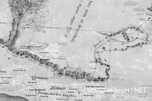 In 1844 the famous "pathmarker," John C. Fremont, came into the Mojave Desert from the Tehachapi Mountains on the second of his several expeditions through the West. While still in the Tehachapis, a San Fernando Mission Indian rode into camp one day and offered to conduct Fremont and his men to an old Indian route that led to the Spanish Trail.
