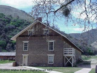 Overview of Fort Tejon(Camp Canada de las Uvas)Established on August 10, 1854, by 1st Lieutenant Thomas F. Castor, 1st Dragoons, to replace ineffectual Fort Miller on the San Joaquin River, Fort Tejon was located in the Canada de las Uvas, about 15 miles southwest of the Tejon (Sebastian) Indian Reservation, near present Lebec in Kern County. "The location had been selected by Brevet Major John Donaldson of the Quartermaster Corps, apparently with the approval of Lieutenant Edward F. Beale, U.S. Navy, who was named superintendent of Indian affairs for California in 1852. The post was intended to guard the pass through the Tehachapi Mountains, to control the areas tribes, and to protect the Indians on the reservation which had been established the previous year. In 1858, when the fort became a station on the Butterfield overland route, the garrison provided military escorts through the pass. The post was considered comparatively small by Army standards, with an average garrison complement of 225 men. Adobe built Fort Tejon was the principal military, political, and social hub of central California's vast area during the early American period. Fifteen of the officers who served there eventually became generals in the Civil War, eight Union and seven Confederate. While the fort was being constructed, the troops were encamped adjacent to its site, and their temporary quarters were called Camp Canada de las Uvas. Lieutenant Beale, associated with all facets of Fort Tejon's history, made the post his headquarters. Serving as director of the large survey team planning a wagon road from Texas to California, he brought a caravan of 28 camels across the Southwest from a point near San Antonio to Fort Tejon in 1857. The experimental use of camels was so successful that Beale strongly recommended their continued use by the Army throughout the arid Southwest. The breaking out of the Civil War, however, in addition to other factors, put an end to his proposal. The fort was evacuated on June 15, 1861, by order of Brigadier General Edwin Vose Sumner. Fort Tejon was reoccupied on August 17, 1863, by California Volunteers in compliance with an order of Brigadier General George Wright. The permanent abandonment of the post on September 11, 1864, in accordance with a directive issued by Major General Irvin McDowell, was coincident with the termination of Tejon Reservation. The military reservation and its 25 structures then became a part of the Rancho Tejon, a Mexican land grant, purchased by Lieutenant Beale, who eventually increased his holdings to nearly 200,000 acres. Part of Fort Tejon's site is now a state historical monument and a number of the old fort's original buildings have been restored. Source - Military Museum |