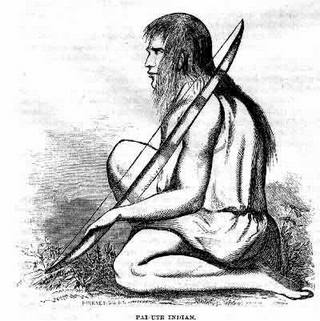 About fifty Pai-Utes came into camp. The chief, followed by a long train of warriors, approached to pay his respects. He was short, muscular, and inclining to corpulency, his face oval and pleasing, though painted in black-and-red stripes. His black hair was cropped in front and clubbed behind, although some of his people wore it in plaits, matted with mud and cut squarely, to hang in the middle of the back. His nose was wide and slightly aquiline, his eyes small and oval, and surrounded by large blue circles of paint. His dress consisted of an old blue flannel shirt, instead of the simple apron worn by his people; but the white strangers soon decked him in gay costume.