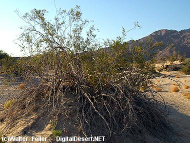 Many animals bed in or under creosote bush. Desert reptiles and amphibians use creosotebush as a food source and perch site and hibernate or estivate in burrows under creosotebush, avoiding predators and excessive daytime temperatures. Death Valley National Park