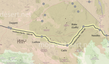 Railroad Across the Mojave![]() 35th Parallel Survey - 1854 ![]() First trans-Mojave railroad 1876-84 Historic RailroadsHistoric Class II Railroads- Regional railroadsCarson & Colorado - 1883, Narrow Gauge Class III Railroads - Short line railroads ![]() Historic Mojave Desert Railroad Class I Infrastructure ![]() SP San Francisco to Los Angeles - 1876 ![]() SP Mojave to Daggett - 1882-83 ![]() SP Daggett to Colorado River - 1882-83 ![]() Atlantic & Pacific - 1883 |