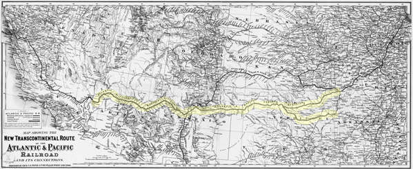 But in transcontinental railroad strategy, while the Southern Pacific’s principal effort towards building a southern transcontinental railroad through Texas and Louisiana to the Mississippi and the Gulf followed a different route eastward from Los Angeles to Yuma, this Southern Pacific line from Mojave to Needles was built at least in part as an attempt to block a competitor, the Atlantic & Pacific Railroad, Western Division, a part of the Santa Fe System, which was even then building westward from near Albuquerque, New Mexico Territory, across northern Arizona Territory, establishing towns such as Winslow, Flagstaff and Williams en route, toward the Needles from the east. When the A.& P. in fact reached Needles in 1883 and bridged the Colorado in 1884, it faced a competitor already there—the Big Four’s Southern Pacific. However, the Santa Fe crowd was not without its own leverage, and threatening to parallel the Southern Pacific all the way to San Francisco and by other means heading for Cajon Pass and Los Angeles, the Santa Fe forced the Southern Pacific to work out an agreement acceptable to both parties which among other things involved selling the Needles-Mojave line to the Santa Fe System, specifically to the Atlantic & Pacific Railroad, Western Division, and acquiring trackage rights over the Southern Pacific over Tehachapi Pass all the way to San Francisco so that the Santa Fe System would be able to offer through passenger traffic on that route, although in time the Santa Fe built and acquired its own line up through the Central Valley and around via Martinez to Richmond and Oakland on San Francisco Bay, with ferryboats across the Bay into San Francisco itself. In taking over this Southern Pacific line, especially the part between Needles and Barstow, the Santa Fe System achieved ownership of a transcontinental railroad from Chicago to the Pacific Coast eventually at Los Angeles and through trackage rights at San Francisco. Thus the trackage which runs between Barstow and Needles south of Mojave National Preserve and, whose right-of-way from Fenner to a point east of Goffs actually forms the southern boundary of Mojave National Preserve, started out as a part of the Southern Pacific Railroad, but soon became trackage of the Atlantic & Pacific Railroad, Western Division, a part of the system owned by the Atchison, Topeka & Santa Fe Railroad. It was operated initially with the typical 4-4-0 American Standard, 2-6-0 Mogul and 2-8-0 Consolidation-type locomotives which most American railroads used in the 1880s, but in the search for new motive power, larger and ever large locomotives would be added. Among the first were a number of 4-8-0 types, not a common wheel arrangement, but when first put in service they had so many more wheels than their predecessors that A.& P. railroad men in the desert between Needles and Barstow and Cajon and Tehachapi Passes nicknamed them “tarantulas” after the many-legged spider seen often in those regions. In the decade which encompassed the Silver Crash of 1893, the Atchison, Topeka & Santa Fe Railroad went into bankruptcy and when reorganized was renamed the Atchison, Topeka & Santa Fe Railway, and its subsidiary Atlantic & Pacific Railroad, Western Division, followed it into bankruptcy, was reorganized, and emerged renamed Santa Fe Pacific Railroad, which operated from the late 1890s until 1902, at which time it was absorbed into the Atchison, Topeka & Santa Fe Railway as a part of the “Coast Lines” of that company, headquartered in Los Angeles. The railroad continued under that name until 1996 when through a merger with the Burlington Northern (itself a merger of the Chicago, Burlington & Quincy, Great Northern, and Northern Pacific railroads), it became the Burlington Northern & Santa Fe Railway, a name changed further early in 2005 when the company dropped the name in favor of being known officially just by the initials, BN&SF Railway. Thus the trackage between Fenner and a point east of Goffs, which also runs along parallel to the southern boundary of Mojave National Preserve although some distance to the south of it west of Fenner, has been known by six different names under six different companies: Southern Pacific; Atlantic & Pacific, Western Division; Santa Fe Pacific Railroad; Atchison, Topeka & Santa Fe Railway; Burlington Northern & Santa Fe Railway; and finally, BN&SF Railway. During its long history this line carried not only an impressive amount of transcontinental freight traffic, but operated a long list of famous passenger trains, starting with the California Limited and the Santa Fe De Luxe and in later years adding The Grand Canyon Limited, El Capitan, The Chief, and The Super Chief which, under Amtrak’s operation of passenger trains since 1971, continues today as an Amtrak train known as The Southwest Limited. |