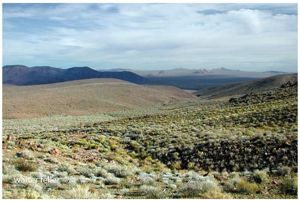 We attempted to drive beyond Saratoga Springs. There was supposed to be a road, but neither Charlotte nor I could discern it. We bumped along over ground so cut by shallow water-channels that after about seven miles we dared not proceed, for a wrecked car in that shining desolation would stay forever where it smashed. We tried to walk to the top of the gravel-ridge that seemed to shut off the main valley. It looked near and innocent enough, but when we tried to reach it over the dazzlingground under the blazing sun we found, to our surprise, that we could not. The temperature was about 95 degrees, and the air very dry. The heat alone would have been quite bearable had it not been augmented by the white glare. Suddenly we realized that the little ridge was inaccessible; all the little yellow hills and ridges, and the rocky crests that shone like burnished metal, were likewise inaccessible. The realization brought a terrifying sense of helplessness. Here was a country you could not travel over: though your goal were in sight you might never reach it. The strength and resourcefulness you relied on for emergencies were of no avail; an empty canteen, a lost burro, a smashed car, and your history might be finished. We began to understand why this place, so gay with color, so flooded with light, so clean, so bright, was called Death Valley. Before us was the opening in the mountains where the terrible valley itself lay. It was magnificent in the biggest sense of that big, ill-used word. On the east side rose the precipitous Panamints with a thin line of snow on their summits; opposite them the dark buttresses of the Funeral Mountains faded back into dimness. Between the ranges hung a blue haze of the quality of the sky, like the haze that had obscured the hot Imperial Valley. The mountains were majestic, immovable, their summits dwelt in the living silence. The haze had the magicalness of mirage. We longed to go on while the sun went down and the silence turned blue, for now we were certain that under that haze, between those imposing walls, lay the climax to which Mojave had been leading us, her White Heart. She could never be more desolate, or stiller or grander. It was the logical journey's end, and what had been at first merely a casual choice of destination became a fixed goal to be reached through any hazards. "If you go there," the old prospector had said, "you will see something you won't see anywhere else on earth.' Previous -- Next |